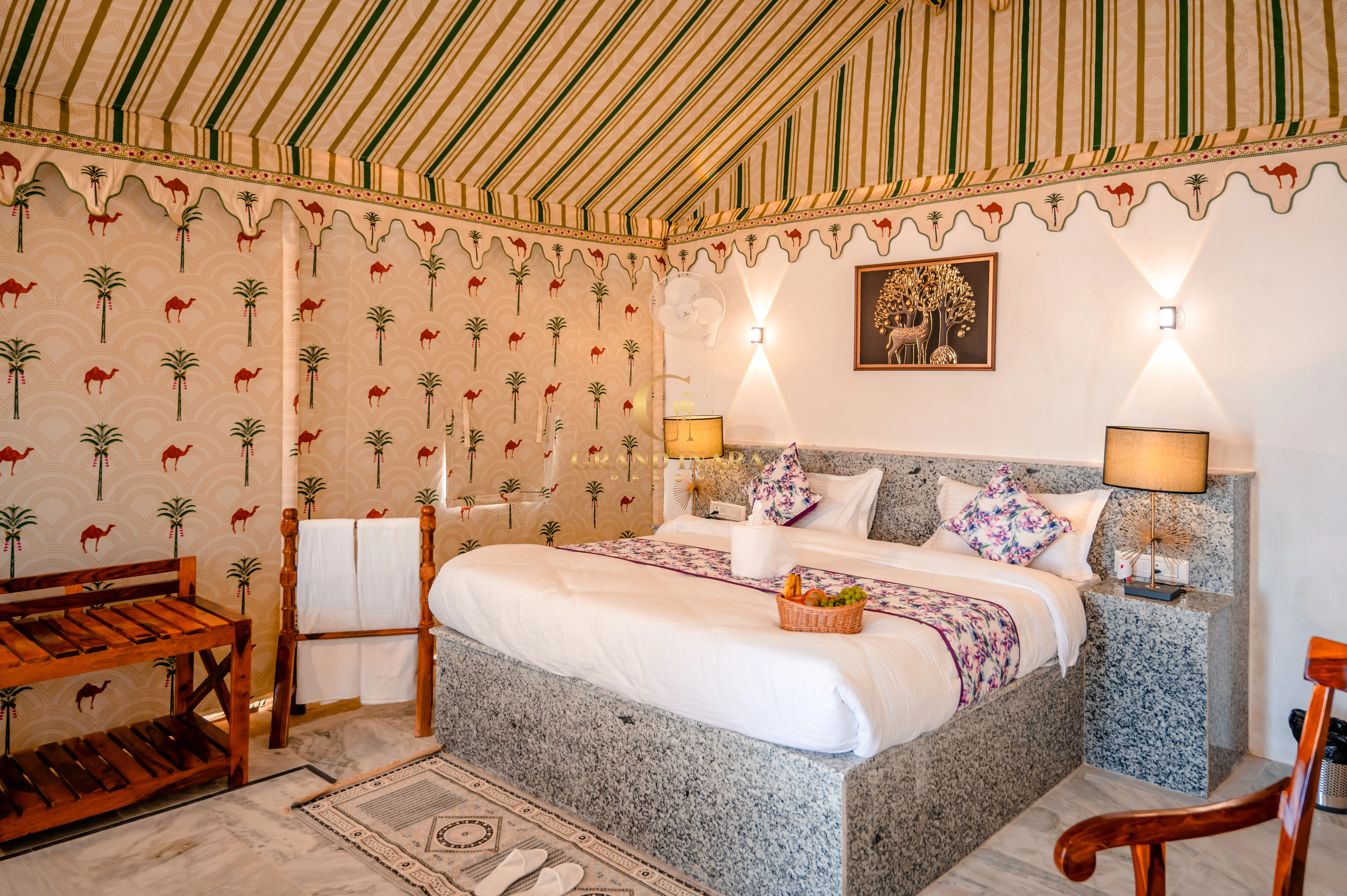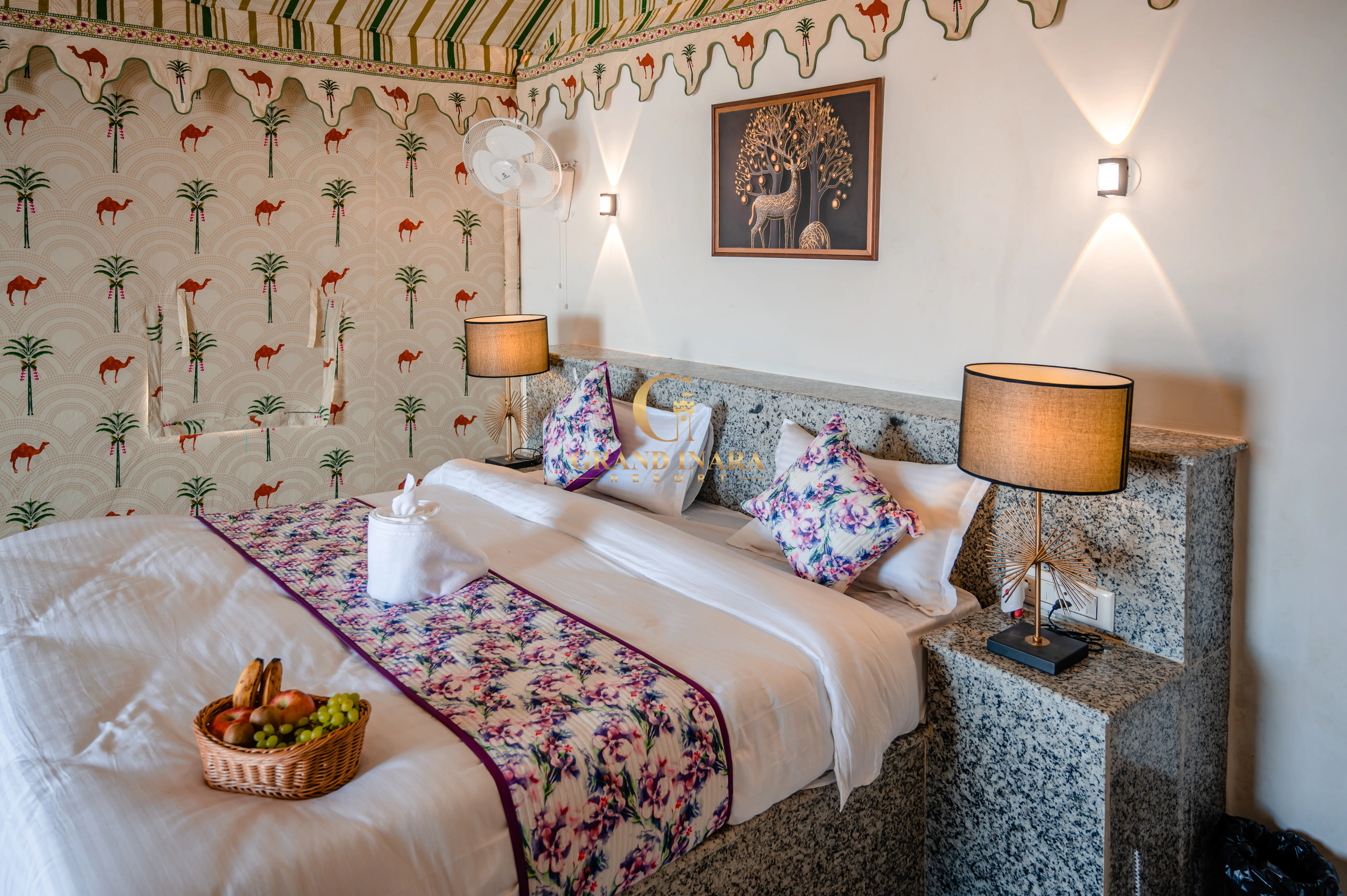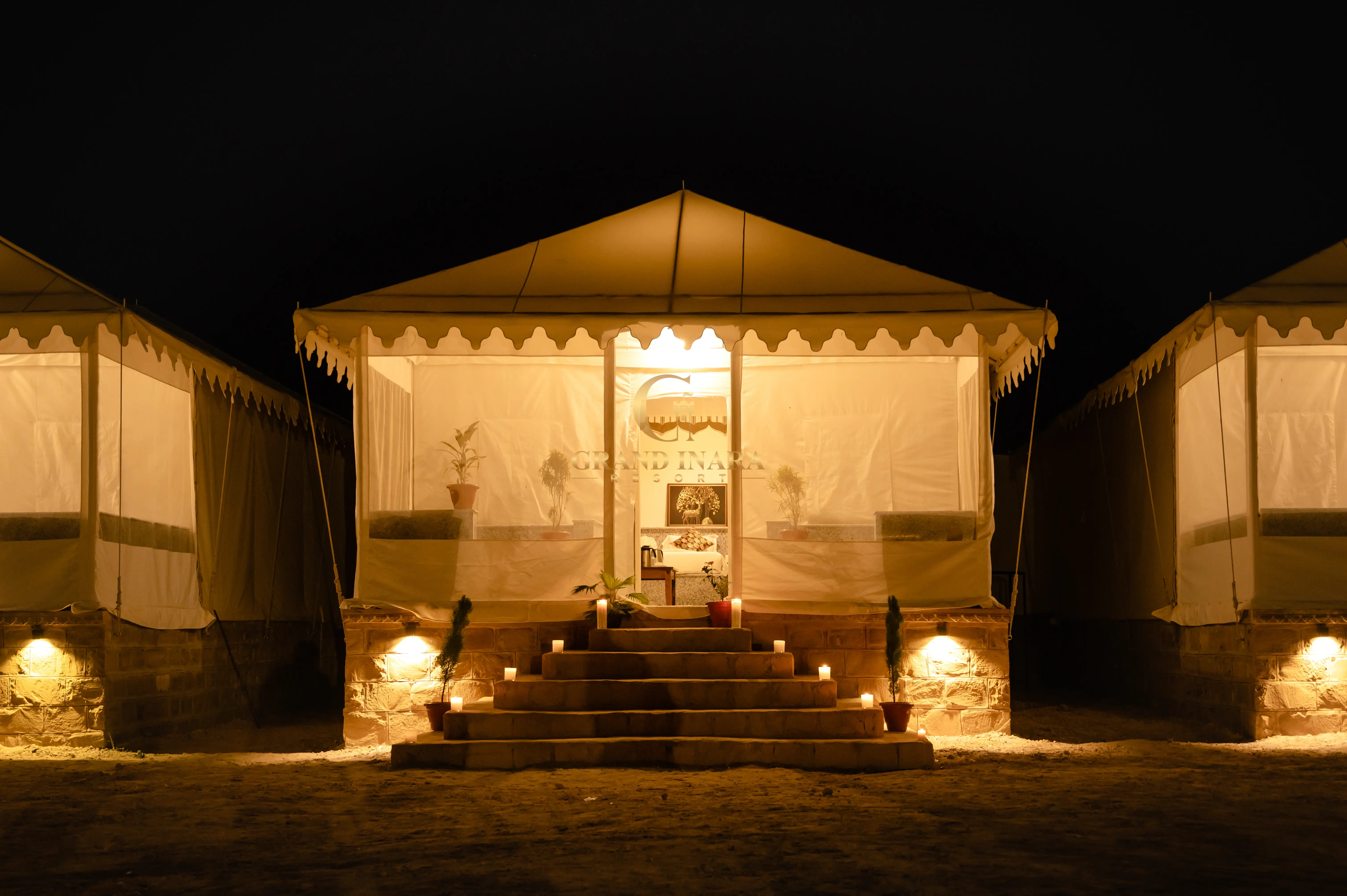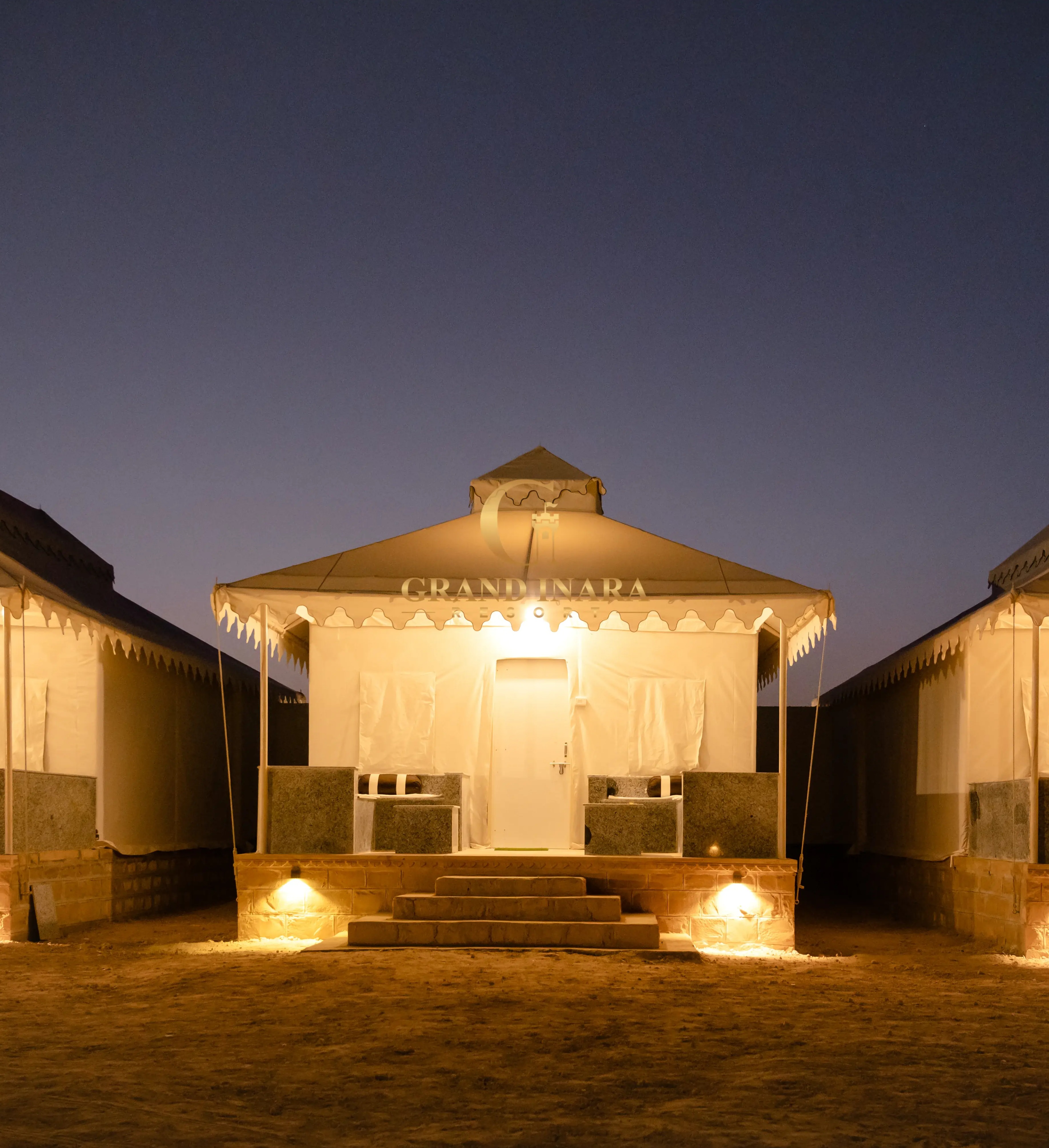 At Grand Inara Resort, nestled in the stunning Sam Sand Dunes of the Thar Desert, Jaisalmer, we offer a unique blend of luxury, adventure, and cultural immersion. Stay in our luxurious Swiss and Omani-style tented accommodations while enjoying the finest traditional Rajasthani cuisine. For the adventure enthusiast, we provide thrilling desert activities, including camel safaris, jeep safaris, parasailing, paramotoring, quad biking, and night safaris with desert star gazing. In the evenings, unwind with live performances of Rajasthani cultural dance, music, and folk arts, making your stay a truly unforgettable experience.