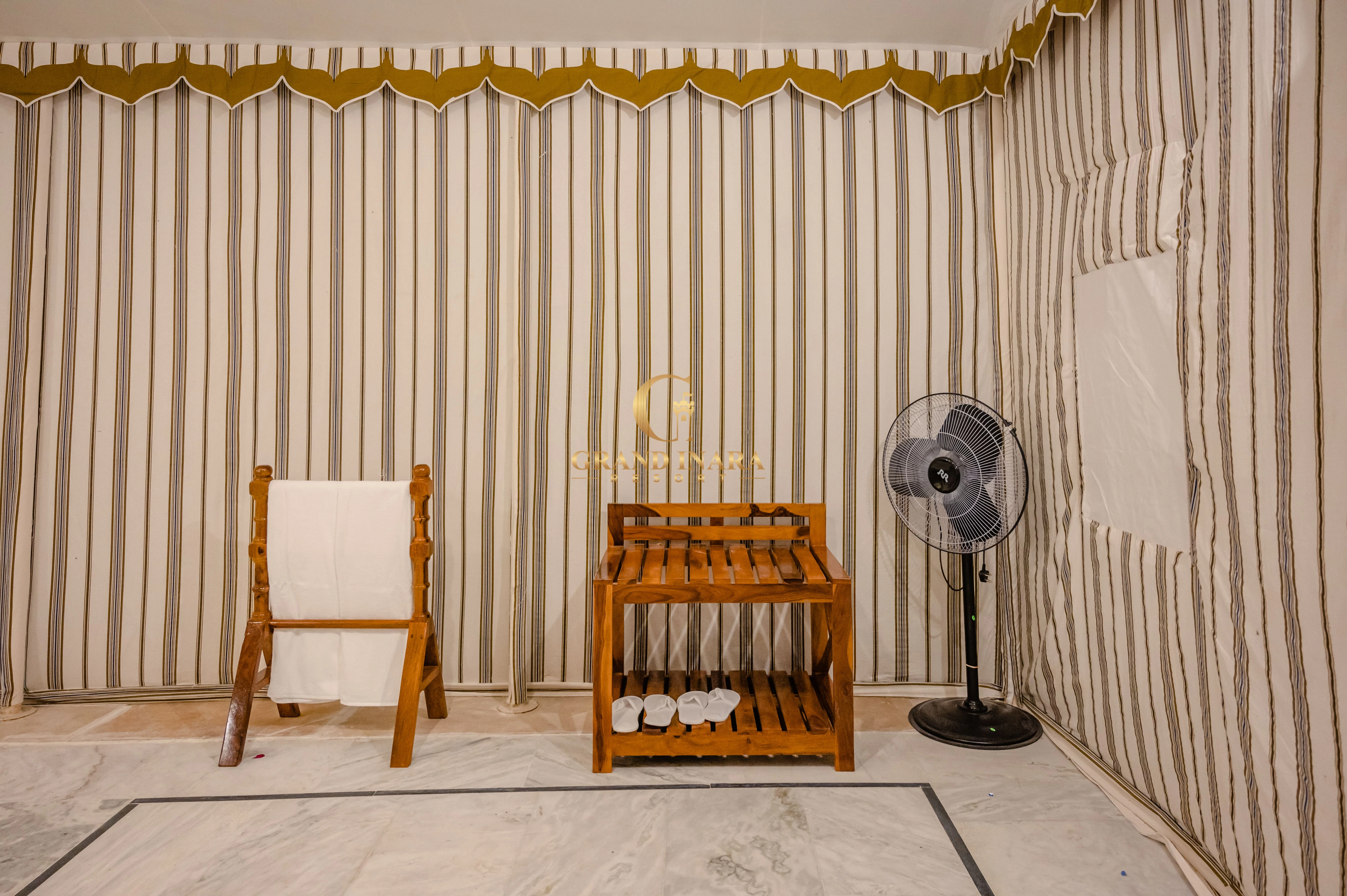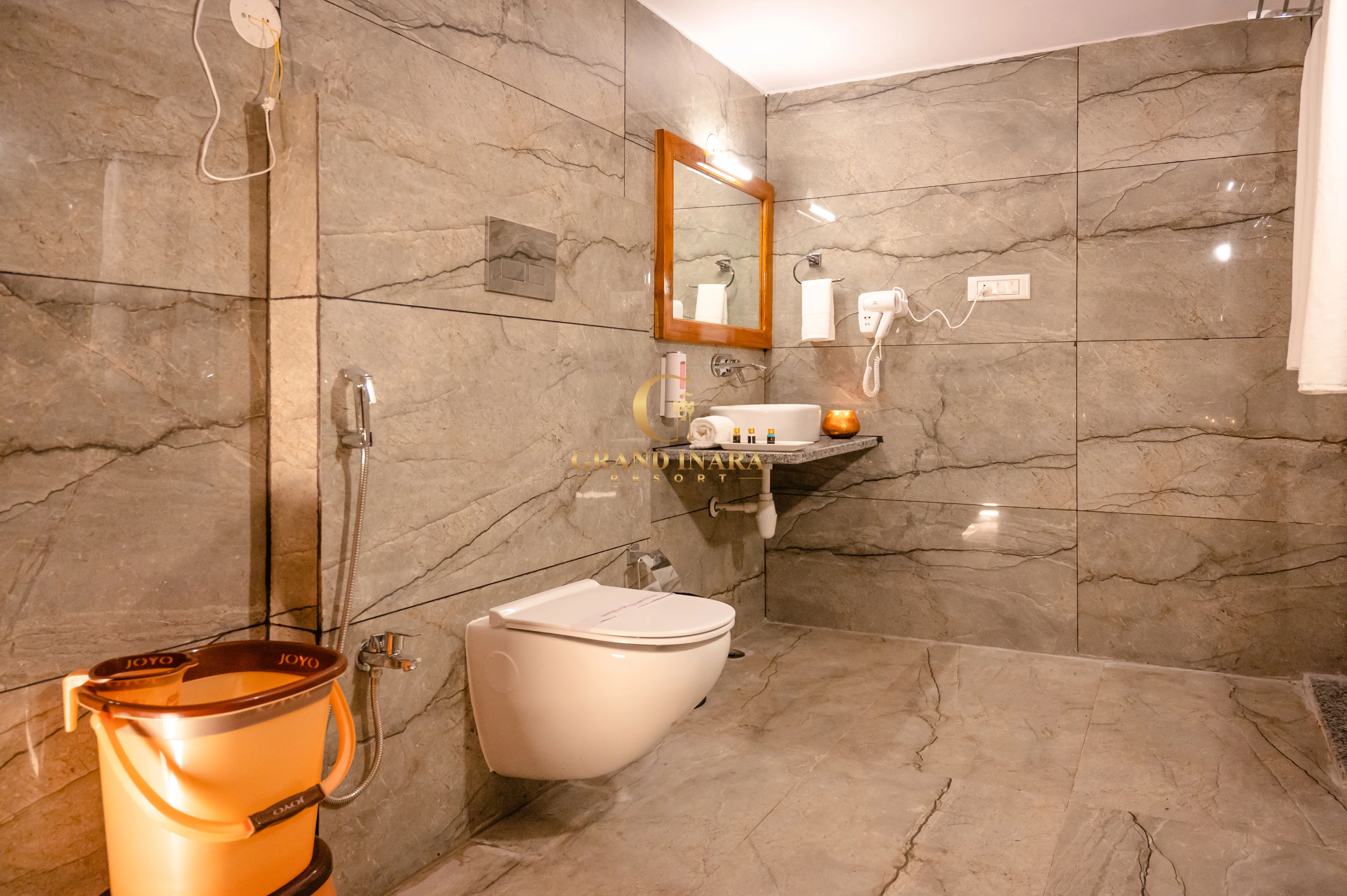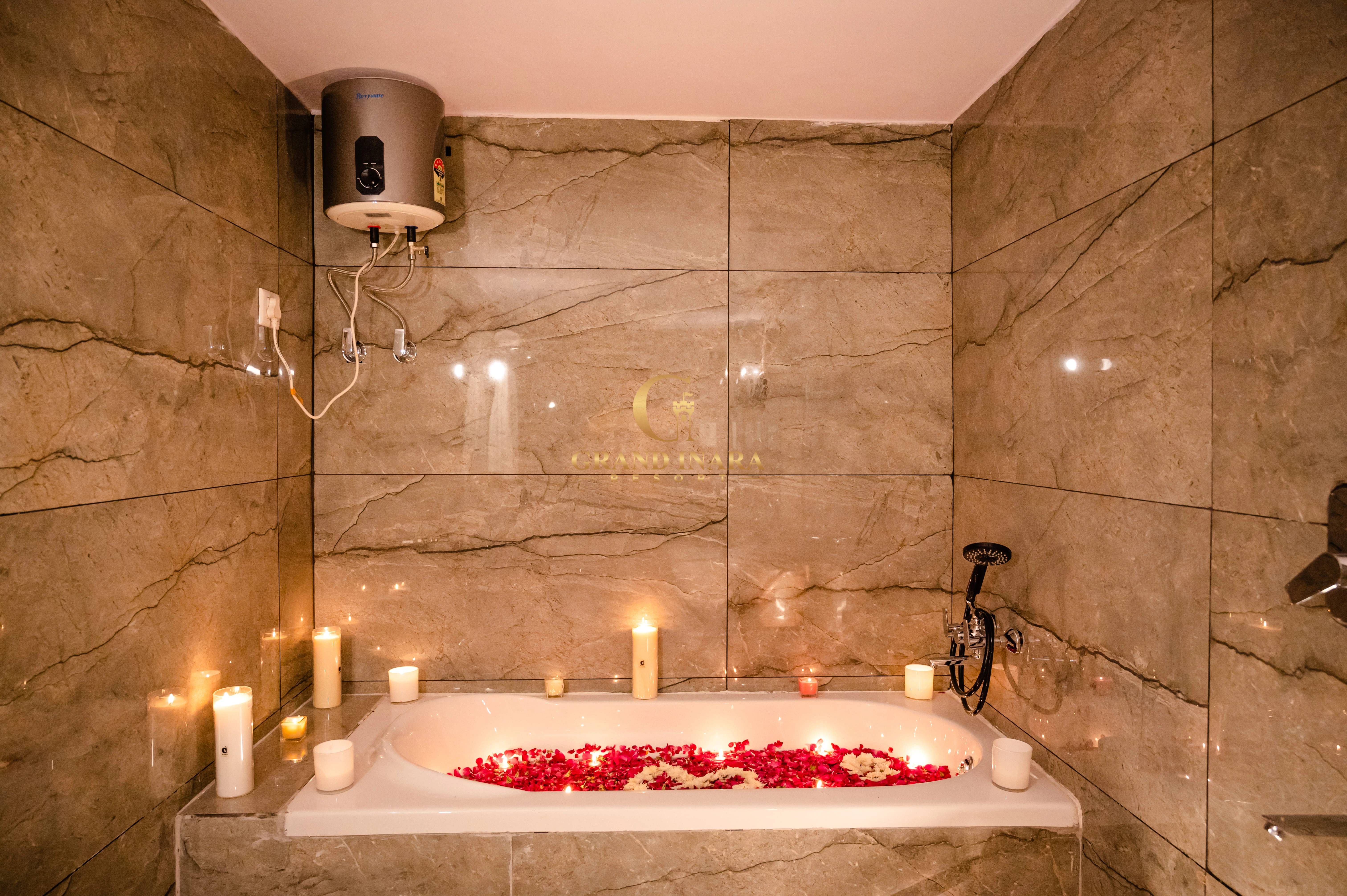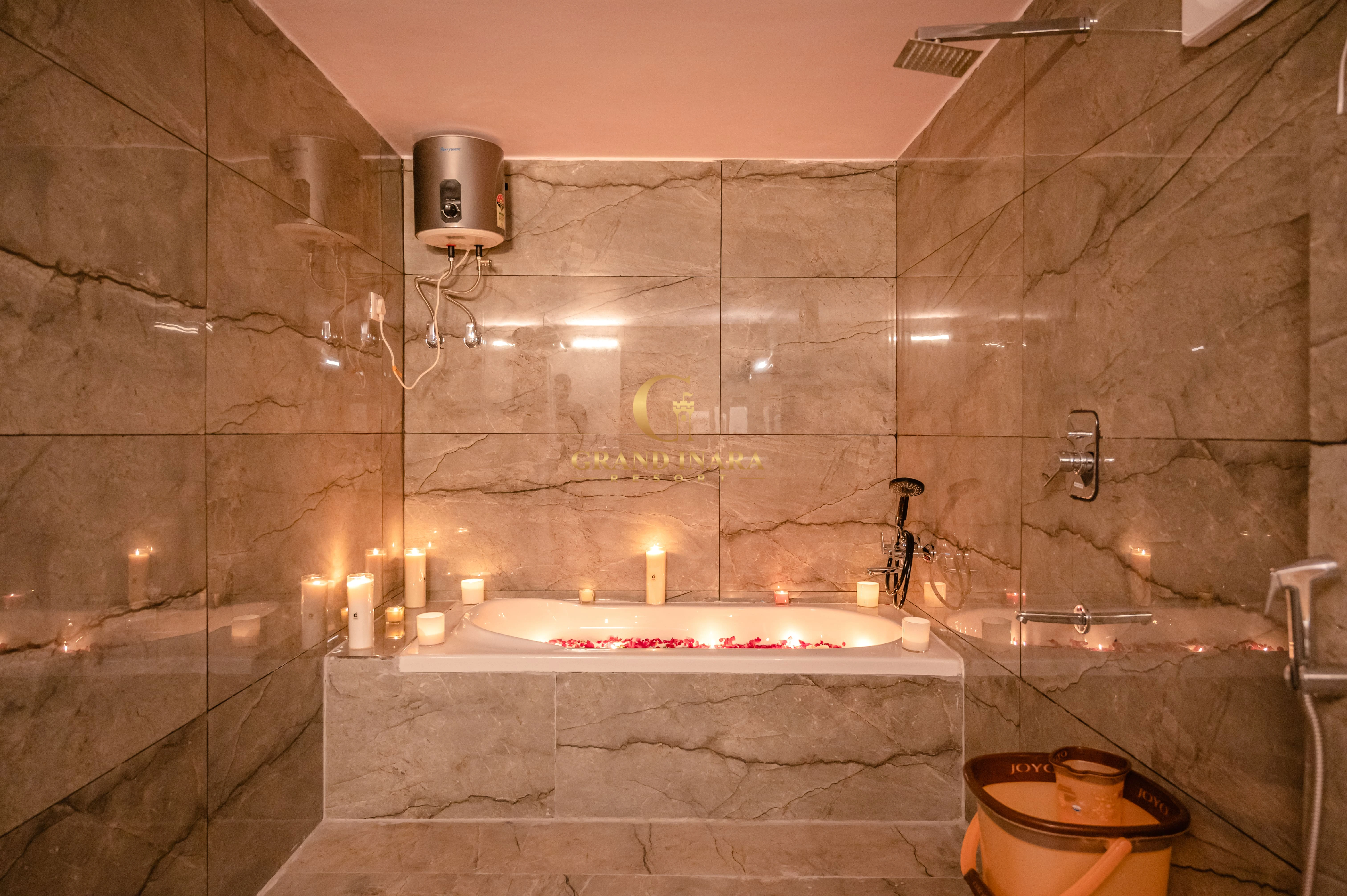 The Grand Inara Couple Suite is an intimate and luxurious retreat designed for romance and relaxation. This elegantly appointed suite features a spacious bedroom with a plush king-sized bed, draped in premium linens, and a cozy sitting area. Soft, warm lighting and rich, earthy tones create a serene atmosphere. The suite includes a private balcony with breathtaking views, perfect for enjoying a quiet moment together. The lavish bathroom offers a deep soaking tub, a rain shower, and dual vanities. Ideal for couples, this suite provides a perfect blend of comfort, privacy, and luxury.